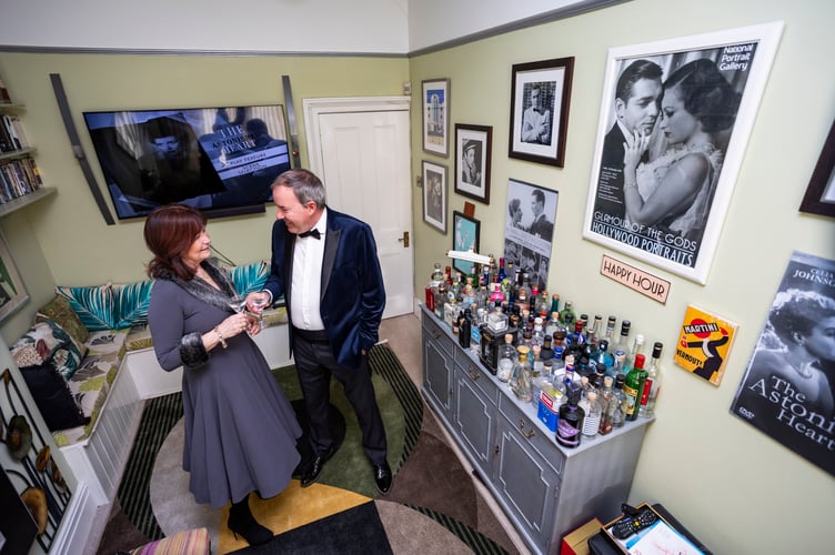 Ian and Yvette Perryman have turned their front room into an art deco picture house, covered in memorabilia and a gin bar with 80 different bottles.