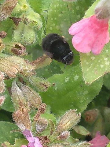I did see someone enjoying the Pulmonaria. It was a fat little bee as black as coal. Looking it up, it might have been a hairy-footed flower bee. I do hope so with a name like that!