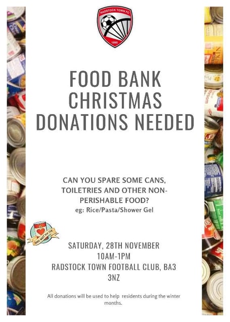 A Christmas Donation Collection will be held at Radstock Football Club at 10am-1pm on Saturday, November 28th.