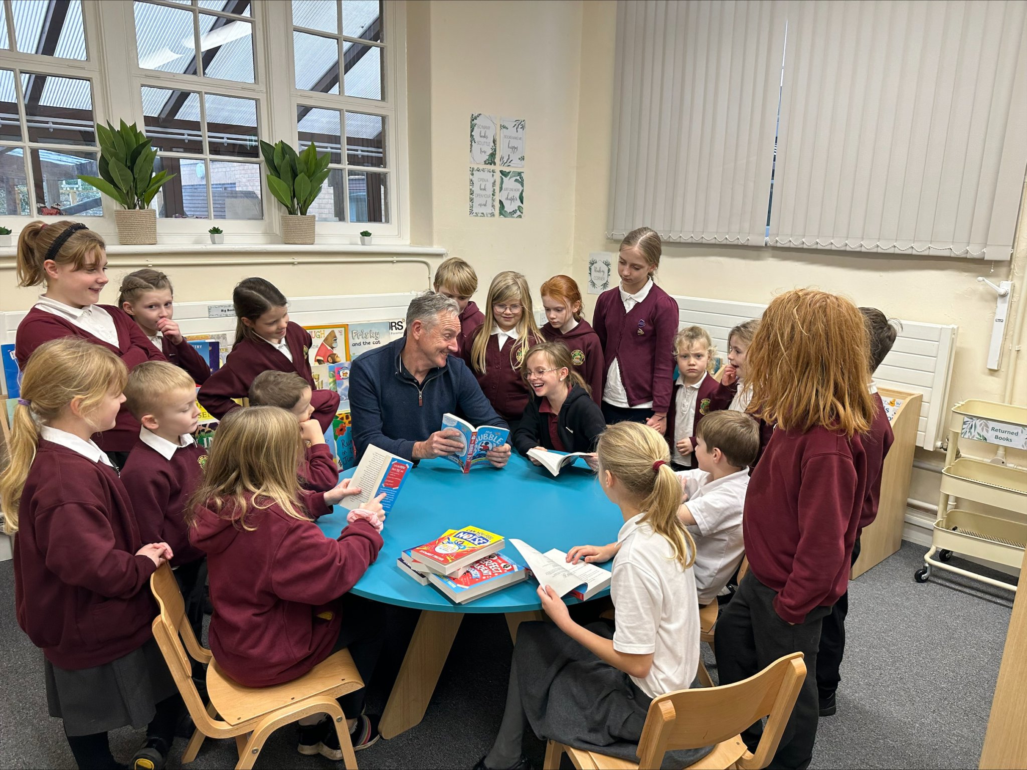 In addition, Stewart formally opened the new school library. Since the new library was finished a few weeks ago, children have been able to enjoy new books with their friends during lunch times, spending time recommending books to each other and sharing their love of reading. Recently six pupils applied for the role and became the school’s new librarians, leading others in their reading quest. Parents and carers will be invited into school next term to read stories with their children in the new library.