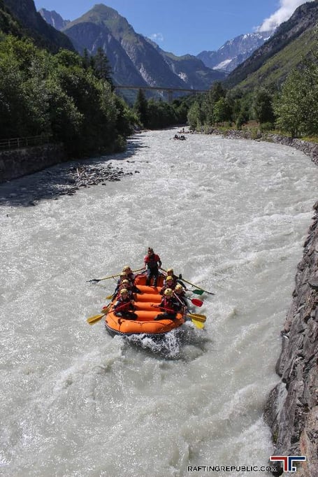 as rock climbing and mountain-biking. For many, the most exciting aspect of the trip was a descent of the local river, the Dora Baltea, featuring almost continuous white water fed by melt-water from the glaciers of nearby Mont Blanc.