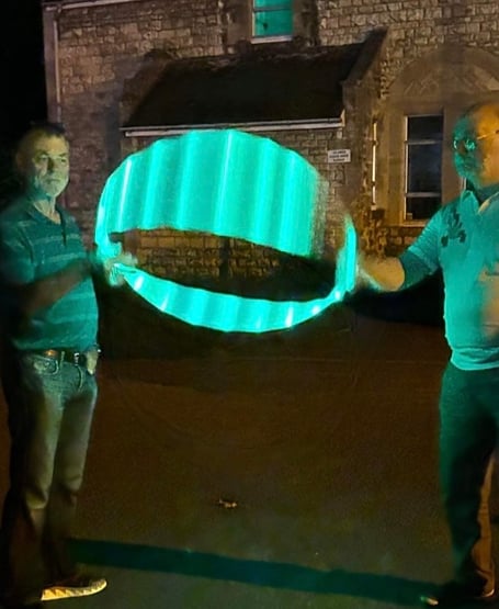 Two of the group persuaded husbands to come along and help, and plied with some excellent home-made cake and posh teas and coffees, Frank and Martyn duly obliged by whirling and twirling an LED endowed hula hoop as the light faded in the car park. To say that they were greeted with enthusiasm would be an understatement and we look forward to seeing the edited photos that certainly encouraged the creativity.
