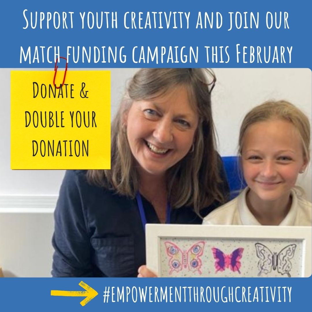 The campaign is raising funds to provide creative sessions and engaging workshops for small groups of young people to encourage self-expression, boost confidence, and develop new skills. A local donor has generously agreed to double every donation.