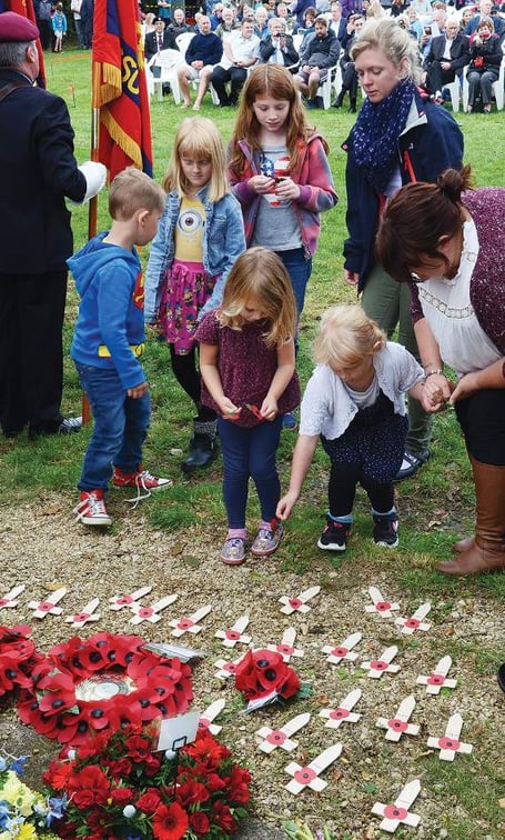 Taking place on Sunday, 3rd September, the Midsomer Norton and Radstock Silver Band will begin the ceremony at 2 p.m. As in previous years, there will be a parade through the village, and all will be welcome at the service, especially children, who can pay tribute with the laying of poppies and crosses (as last year, see left).