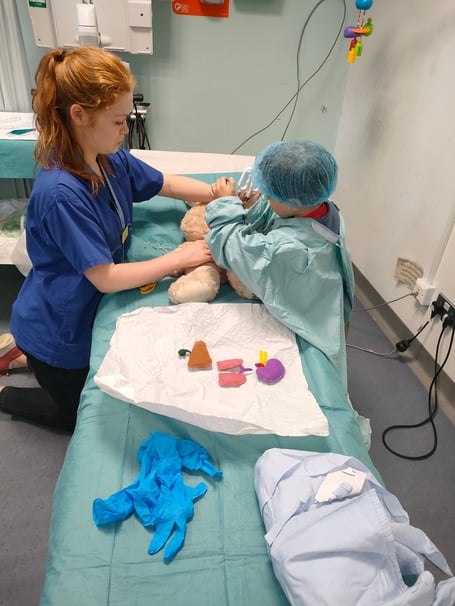 There was then the opportunity to learn more about healthy eating and oral hygiene at the dental station, and to test how good their handwashing was with the help of gel and a UV light to show the spots they had missed. Some even assisted in surgery, operating on a bear specially made by a staff member, which was stuffed with removable, handcrafted felt organs.