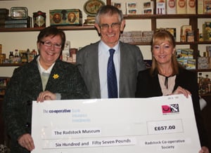 It was the setting for the presentation of a cheque for £657 from Radstock Co-operative Society itself to the museum on Thursday, 28th March. It will be used to support the museum's work in conserving the heritage of the Somerset Coalfield area, social and industrial. Museum Chairman, Clem Maidment, who received the cheque, said: "Radstock Co-operative Society is the commercial hub of the town and Radstock Museum is the cultural hub, so this is very appropriate."