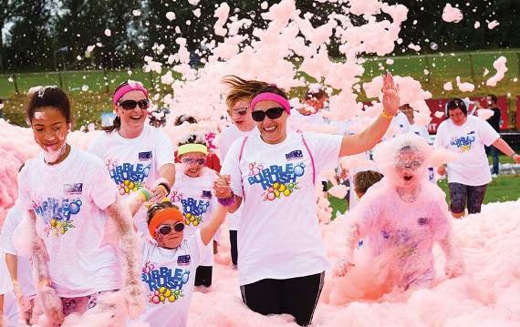 The Bubble Rush is a family event with no age restrictions and the child-friendly route is suitable for pushchairs, prams and wheelchairs. It is not a race; the aim is for everyone to pass the finish line covered in coloured bubbles and smiling! To join in the fun visit: www.dottybubblerush.org.uk