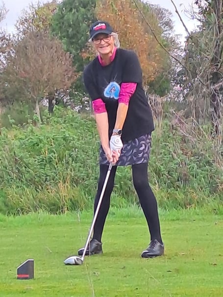 Jackie had invited a representative from her chosen charity “Funding Neuro” to join her on the tee. He duly messed-up his drive by doing an air shot. To cries of “try again” from the assembled ladies and players from the Men’s Section, he delivered a good drive down the middle of the fairway. It was only then that he revealed his name was David Mulligan!